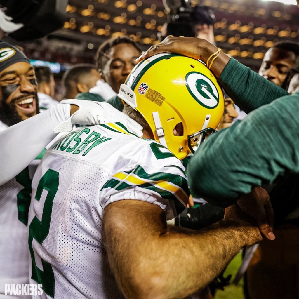 As soon as the Niners scored, I said aloud “They left too much time on the clock.” That proved to be the case, as Aaron Rodgers found Davante Adams on two huge pass plays, to put the Packers in position for a game-winning 51-yard field goal. A field goal Mason Crosby nailed with no problem.